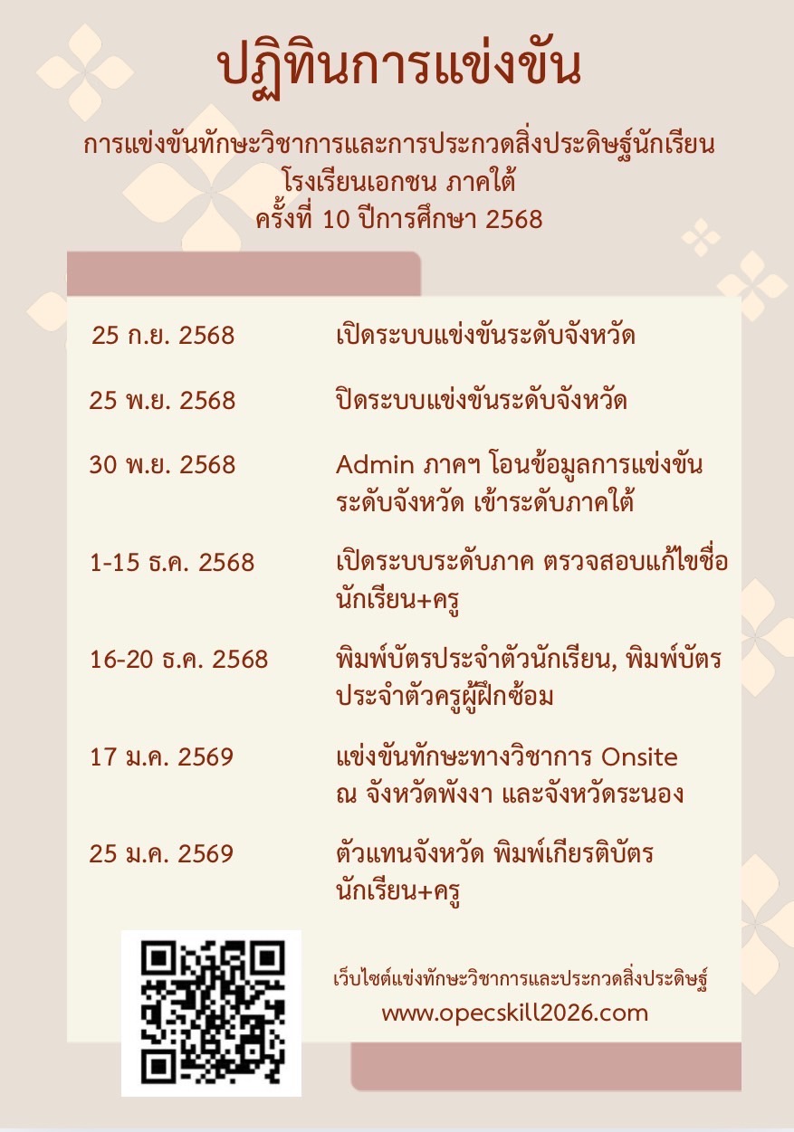 ปฏิทินการแข่งขันระดับภาคใต้ (จังหวัดพังงา-จังหวัดระนอง)