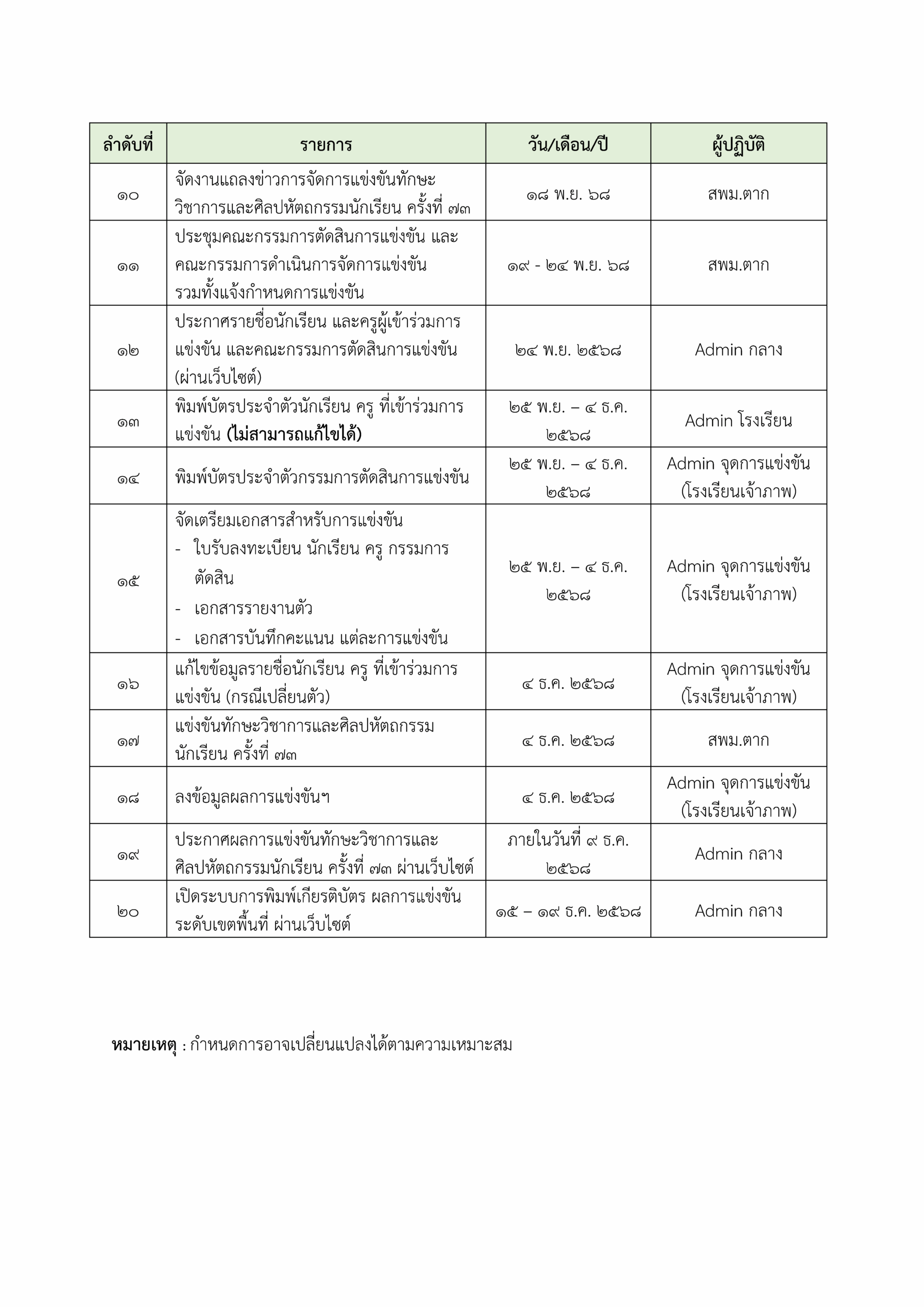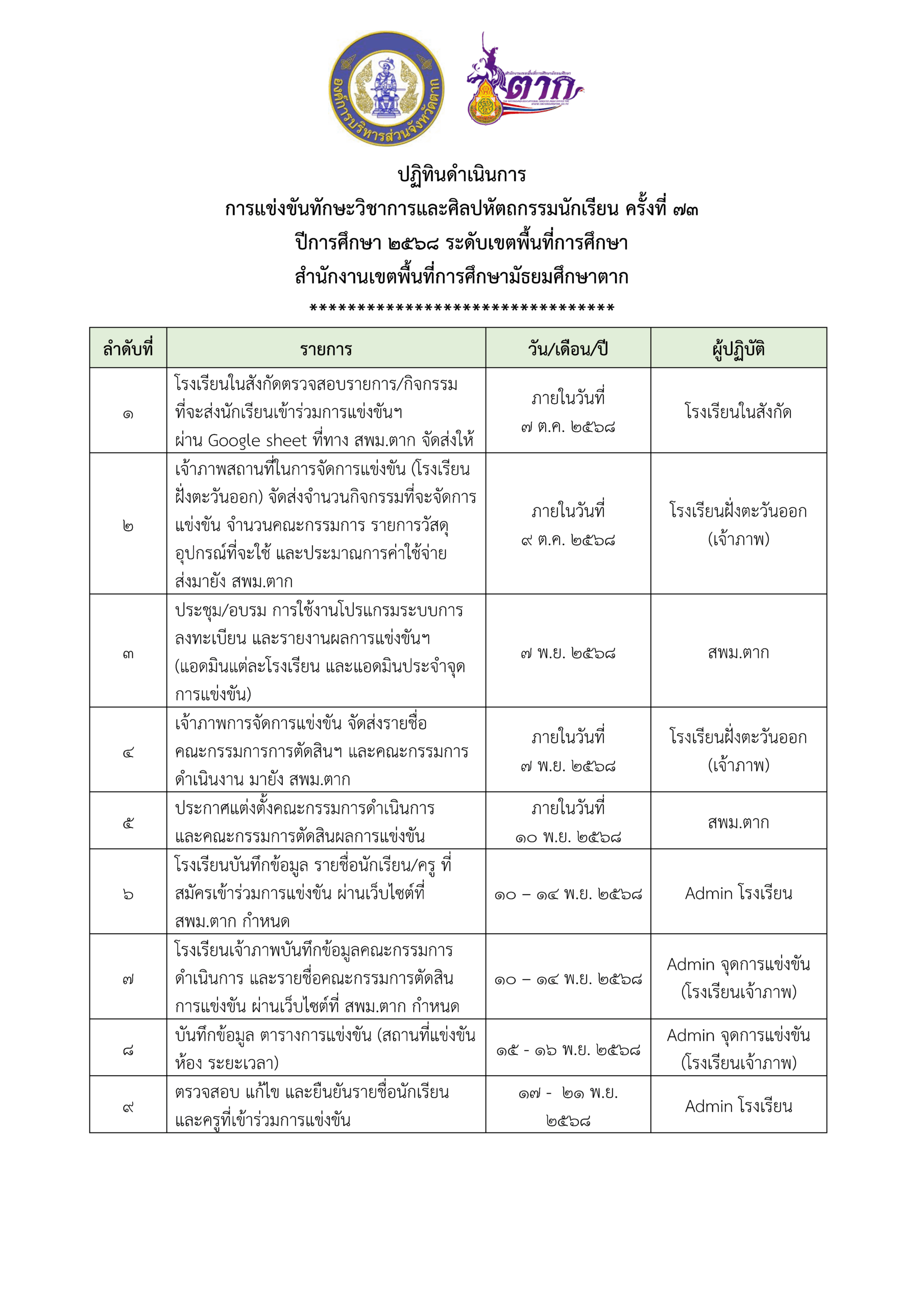 ปฏิทินดำเนินการ การแข่งขันทักษะวิชาการและศิลปหัตถกรรมนักเรียน ครั้งที่ 73 ปีการศึกษา 2568 ระดับเขตพื้นที่การศึกษา สำนักงานเขตพื้นที่การศึกษามัธยมศึกษาตาก 946577 21 ต.ค. 2025 102 share tweet share ……