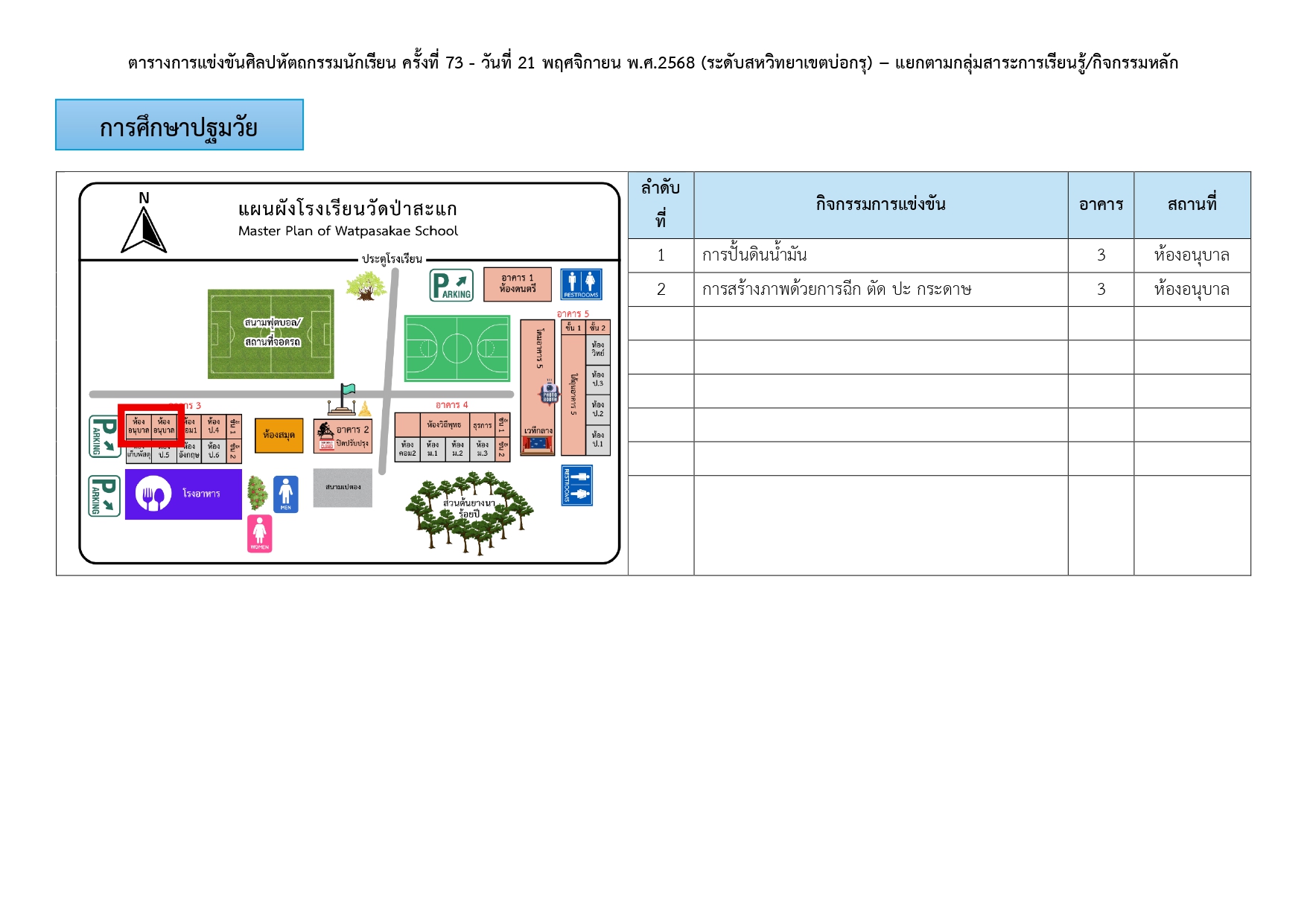 สถานที่จัดการแข่งขัน-การศึกษาปฐมวัย