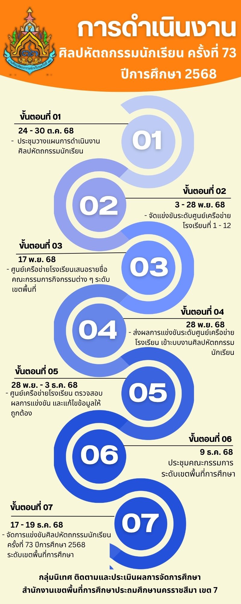 ปฏิทินงานดำเนินงานศิลปหัตถกรรมนักเรียน ครั้งที่ ๗๓ ระดับสำนักงานเขตพื้นที่การศึกษา 192044 23 พ.ย. 2025 23 share tweet share