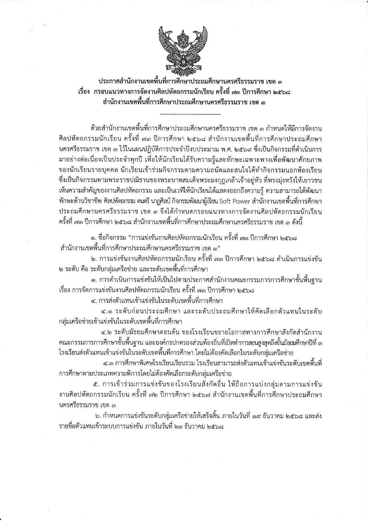 กรอบแนวทางการจัดงานศิลปหัตถกรรมนักเรียน ครั้งที่ 73 ปีการศึกษา 2568 002198 05 ธ.ค. 2025 28 share tweet share