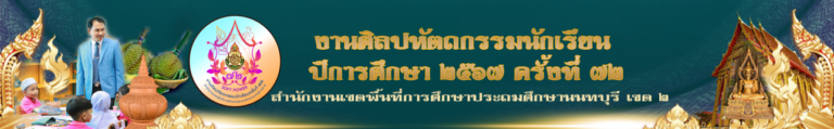 การแข่งขันงานศิลปหัตถกรรมนักเรียน ครั้งที่ 72 สพป.นนทบุรี เขต 2 สำนักงานเขตพื้นที่การศึกษาประถมศึกษานนทบุรี เขต 2สำนักงานเขตพื้นที่การศึกษาประถมศึกษานนทบุรี เขต 2 คลิกดูปฏิทิน